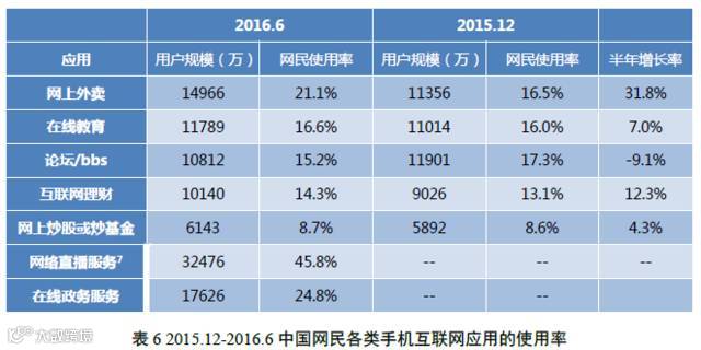 2016年上半年,各类互联网公共服务类应用均实现用户规模增长,在线教育、网上预约出租车、在线政务服务用户规模均突破1亿,多元化、移动化特征明显。在线教育领域不断细化,用户边界不断扩大,服务朝着多样化方向发展,同时移动教育提供的个性化学习场景以及移动设备触感、语音输出等功能性优势,促使其成为在线教育主流;网络约租车领域,基于庞大的市场需求和日益完善的技术应用,行业规模不断扩大;在线政务领域,政府网站与政务微博、微信、客户端的结合,充分发挥互联网和信息化技术的载体作用,优化政务服务的用户体验。
