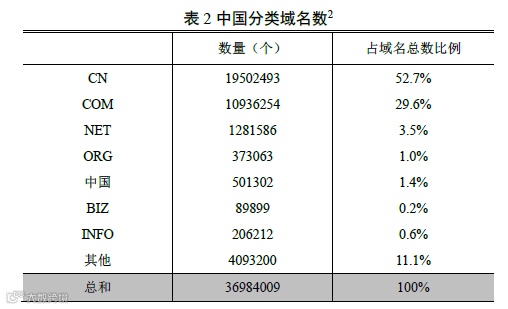 截至2016年6月,我国域名总数增至3698万个。中国国家域名“.CN”注册量达到1950万个(占中国域名总数的52.7%),年增长率达到19.2%,持续保持国内注册量最大的顶级域名。随着我国互联网文化、经济影响力的增强,中国网民更加热衷注册和使用“.CN”域名。