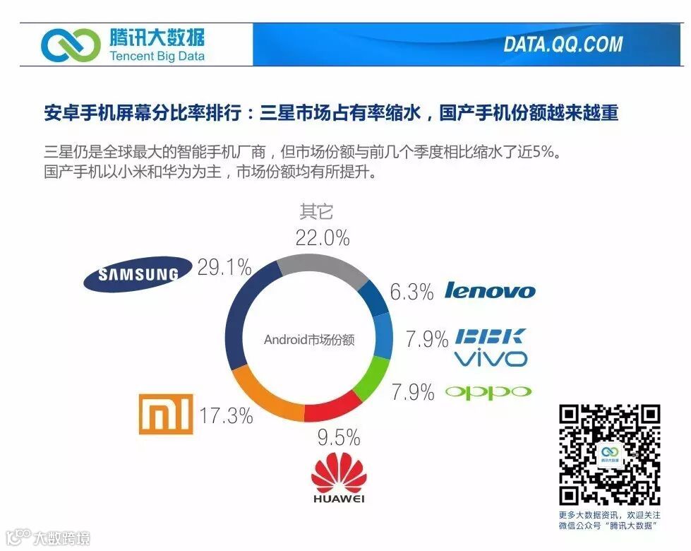 按腾讯2015年Q1移动数据报告,安卓手机屏幕分比率排行,小米仍以19.3%领先华为的9.5%和OPPO的7.9%,友盟今年7月的安卓活跃设备前十排名中,小米+红米仍然独占七席,Talkingdata的7月移动设备覆盖率也显示小米以11.66%力压华为的10.52%,这种联网设备的存量优势才是小米的最大支柱,关键是如何运用。