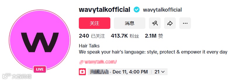 其TikTok官方账号@wavytalkofficial已积累42万粉丝,发布660支视频,数十支浏览量破百万。内容聚焦发型教学与生活化场景,如“15分钟日常发型直出”系列,契合职场人群快速出门需求;相关话题帖数累计达19.4万。