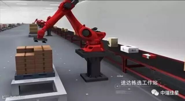 京东的无人仓中也有我们比较熟悉的机器人——六轴机器人可实现拆码垛,就是堆放和移动商品。码垛算法的指导下,每种商品都可以自动生成个性化的垛型,由机器人自动适配对每种商品自动码垛。