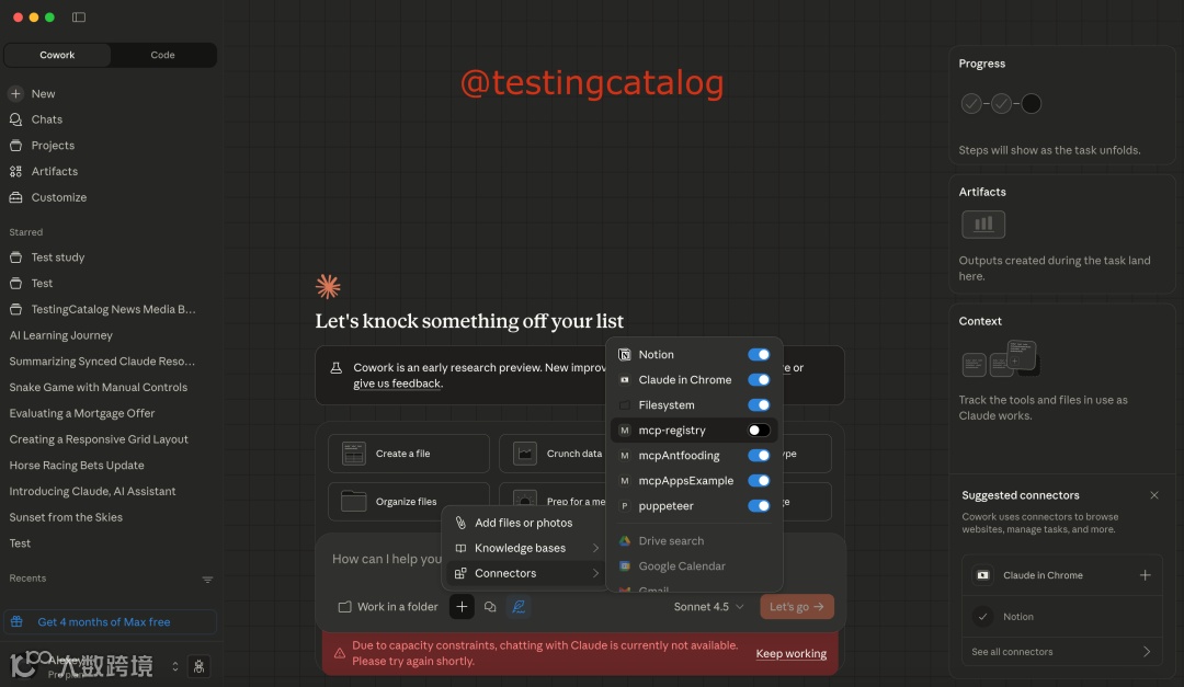 爆料显示,Claude将引入MCP Registry机制,支持动态加载经认证的第三方连接器模块,并根据任务需求自动调用适配能力(如读取邮件、操作Notion、执行Shell命令等)。