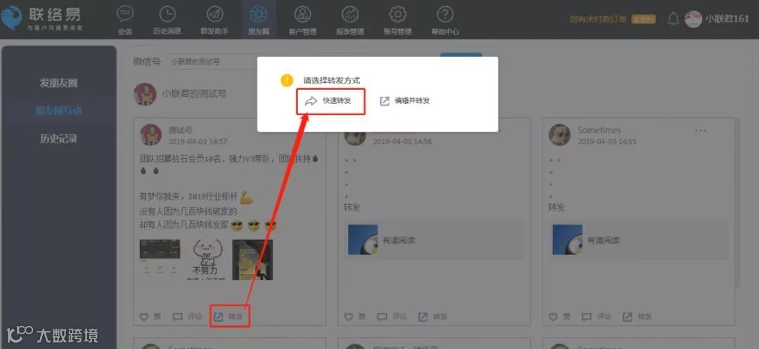 4、朋友圈转发新增快速转发功能,快转即不经过再次编辑,直接转发此条朋友圈的所有内容。此转发方式解决了经过编辑后,没有保留原始文字样式的问题。