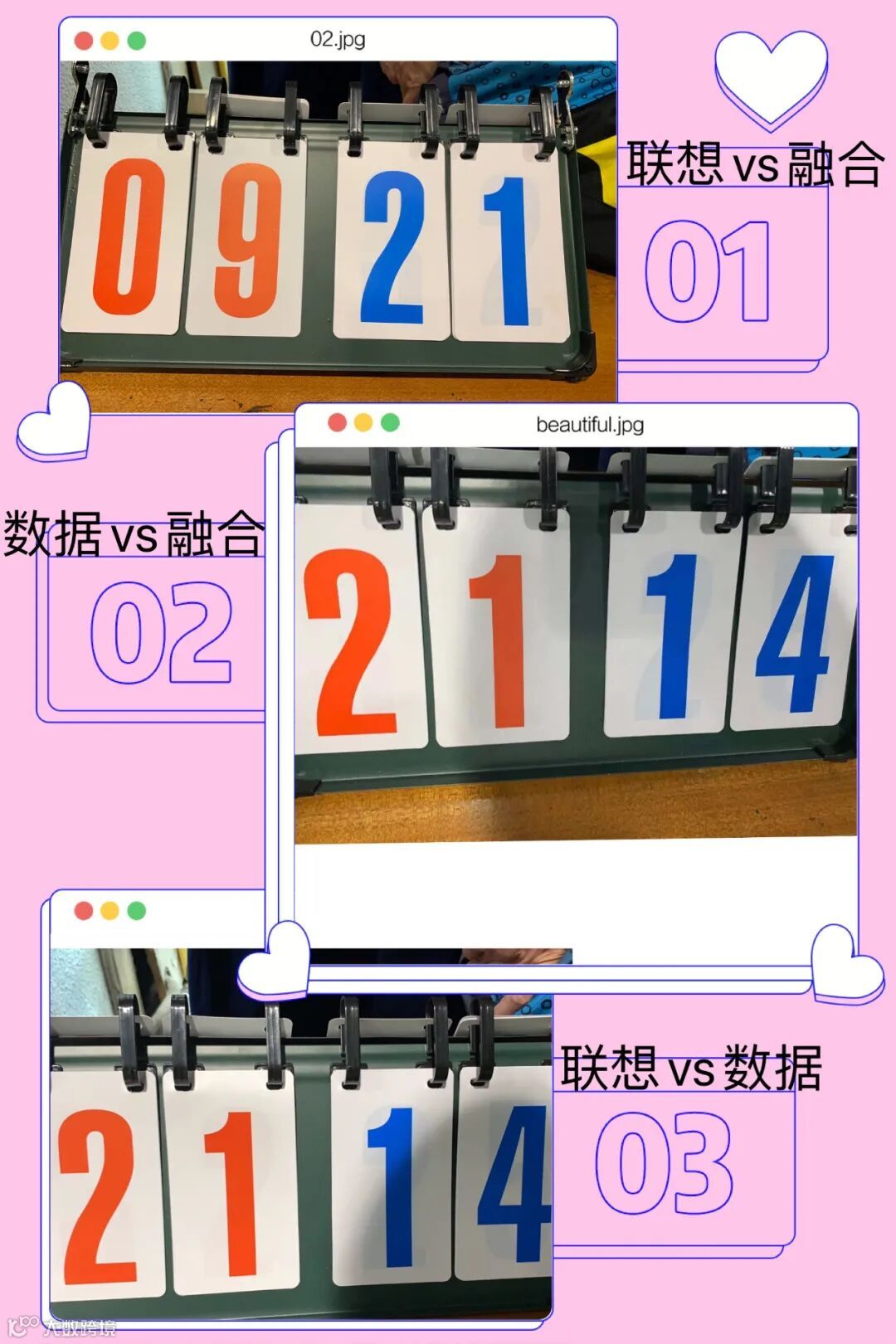 赛场上同事们出色的球艺不断得到场下观众连连叫好,比赛异常激烈,时不时听到鞋与赛场地面发出的刺耳声,融合和数据部你追我赶,最终数据事业部荣获第一届羽毛球团体赛冠军、融合事业部荣获亚军、联想事业部荣获季军。