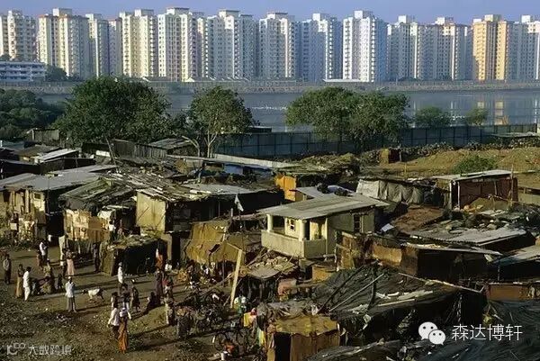 贴两张印度孟买和巴西里约热内卢的图,世界上贫富差距极大的两个城市之一,远处的中产阶级社区必然是有围墙的,和近处的贫民窟形成强烈对比。(Richard Lee)