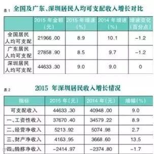 根据国家统计局数据,2015年深圳人均可支配收入44633元,比上年名义增长9%,高出全省0.5个百分点,八大类生活消费中居住支出增速居首。