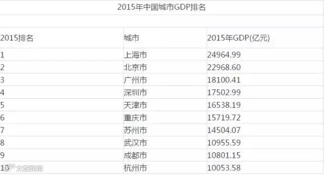 中国城市GDP全国第四