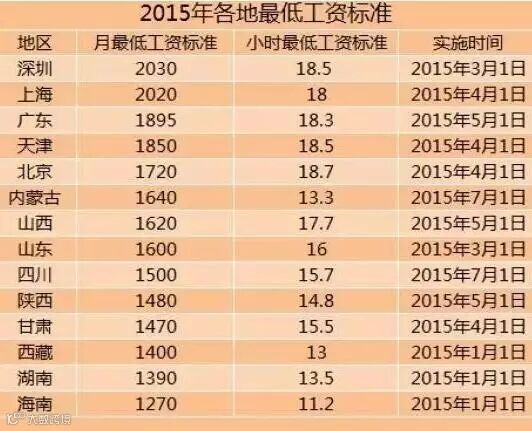 去年14地区上调最低工资标准,深圳最低工资全国最高。