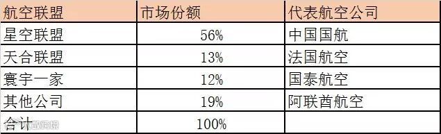 中航集团一直致力于打造北京为枢纽,积数十年之功,初步构建了以北京为枢纽的欧美均衡航线网络,在国内欧美主流国际航线上具有绝对的领先优势。目前,国航和星空联盟其他成员在首都国际机场的市场份额高达56%;考虑到国航与国泰航空的战略合作关系,加之寰宇一家以追求更高服务品质为目标,该联盟很大程度上会选择北京首都国际机场为运营主市场。因此,仅星空联盟和寰宇一家已经占据首都国际机场国际地区市场68%的市场份额,而在首都国际机场中天合联盟仅有13%的市场份额。