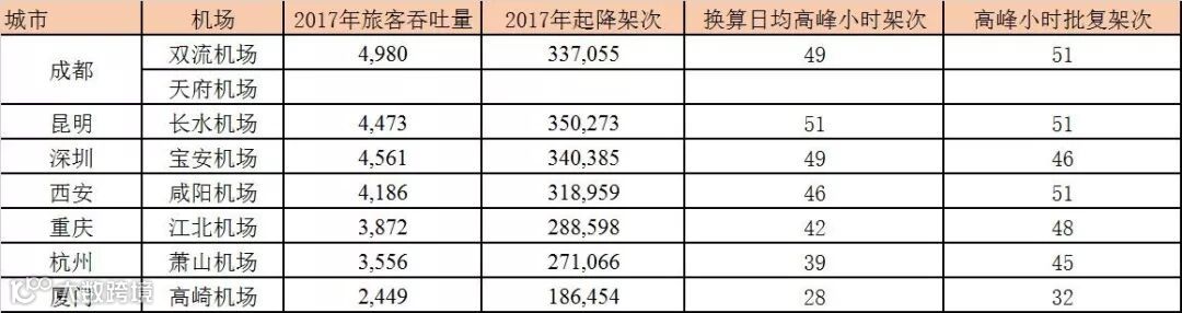 随着中国民航的快速发展,国内主要机场的时刻资源日趋紧张。表10统计了国内其余主要干线机场的运营数据。