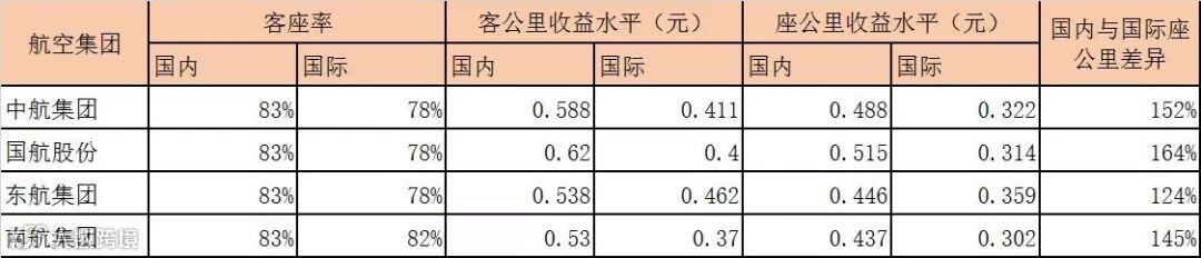 一是从中国航空公司的国内和国际市场经营结果来看,国内市场的收益仍然显著高于国际市场;