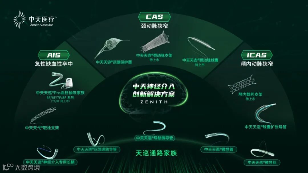 吸取扩全、通路齐备、创新加持,中天医疗AIS一站式创新解决方案已累计服务超7万名中国病患。持续深耕,中天医疗近期还推出了全球首款的编织型神经微导丝、桡股兼备的输送导管等创新产品。在抽吸领域,中天医疗取栓世家持续革新抽吸产品与技术,覆盖抽吸全场景,助力临床实现均质化抽吸。