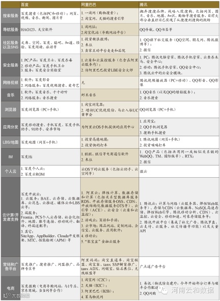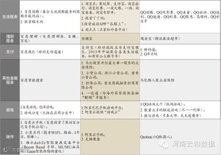 图:BAT产品体系图,黄色部分属于BAT在2013年的并购项目(图片来自钛媒体)