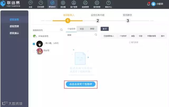 3、当微信号无个性称呼好友时,在群发助手页面中将给出提示,并可直接跳转到个性称呼页面进行标注。