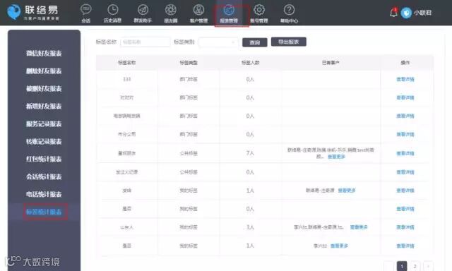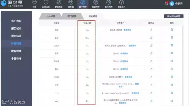 1、在标签管理中对每个标签做一次客户数量的统计。