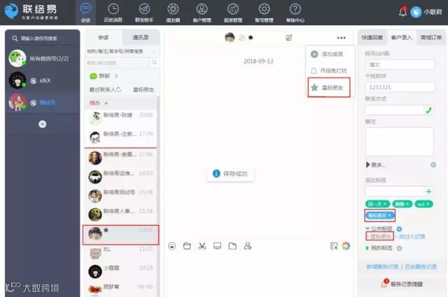 同样也可以直接在客户录入的标签处添加好友为星标朋友。