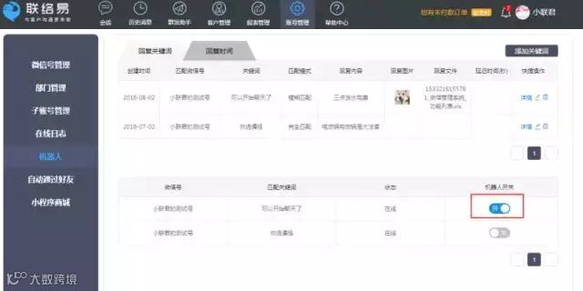 4、机器人设置优化,当新添加关键词和编辑关键词后,系统将会默认把机器人开关打开,避免遗忘未打开机器人问题。