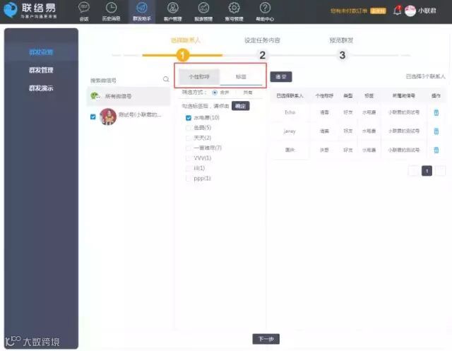 群发助手现已改为只允许针对标注过个性称呼的好友进行群发,但是标签组中的好友是没有限制是否标注个性称呼。本次升级将不再允许标签组中未标注个性称呼的好友进行群发,标签中未标注个性称呼的好友将不会被选中到已选联系人中。同时取消针对群的群发。