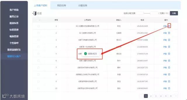 1、删除客户资料时,给出删除成功的提示弹窗。
