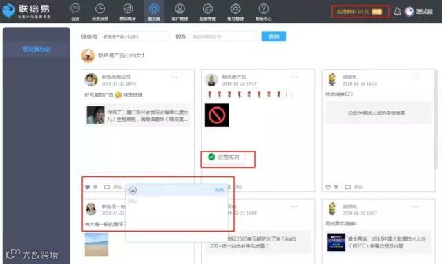 1、现注册试用版即可享受等同企业版的功能,可以查看朋友圈、点赞评论朋友圈。