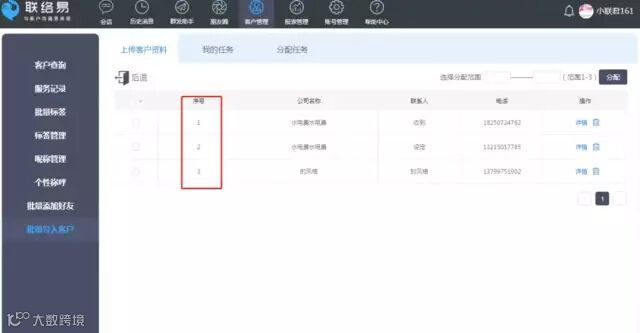 4、修复在上传任务中,分配出去部分客户资料后,序号没有更新的问题。