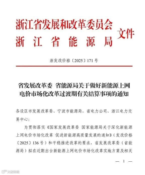 7月11日,浙江省发展改革委、浙江省能源局关于做好新能源上网电价市场化改革过渡期有关结算事项的通知。