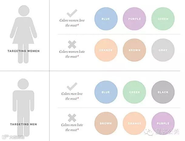 男性不喜欢紫、橘、棕色;他们喜欢蓝、绿与黑色