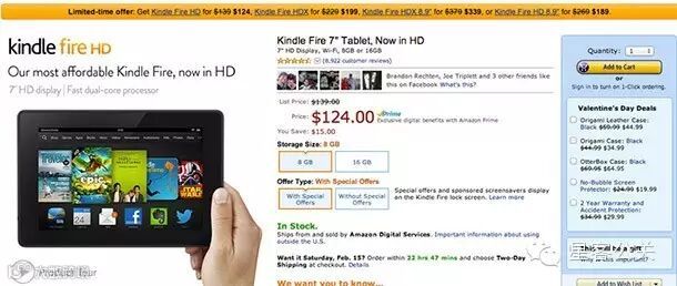 Amazon 使用橘色作为限时特价的促销,让人忍不住想要马上购入一台特价的 Kindle Fire。