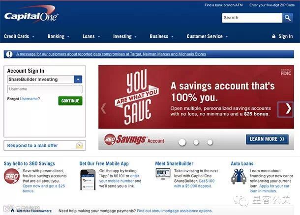 许多银行也大量使用蓝色作为视觉主轴,看看网路银行 CapitalOne.com。