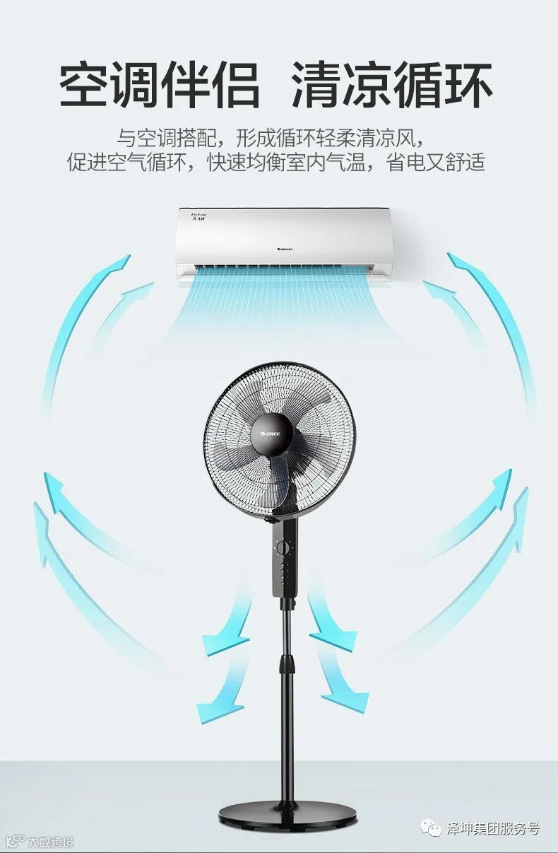 这款格力家用节能落地扇采用的是经典的五叶设计,120度广角吹风,让你坐哪儿都能一身清爽。