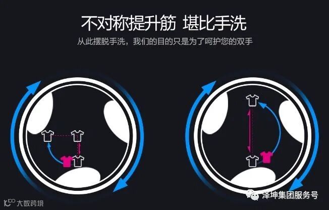 不对称提升筋,堪比手洗;顺时针转动时,提升高度低,衣物摔打路径短轻柔洗涤,呵护衣物;逆时针转动时,提升高度高,衣物摔打距离长强劲洗涤,去污能力强。
