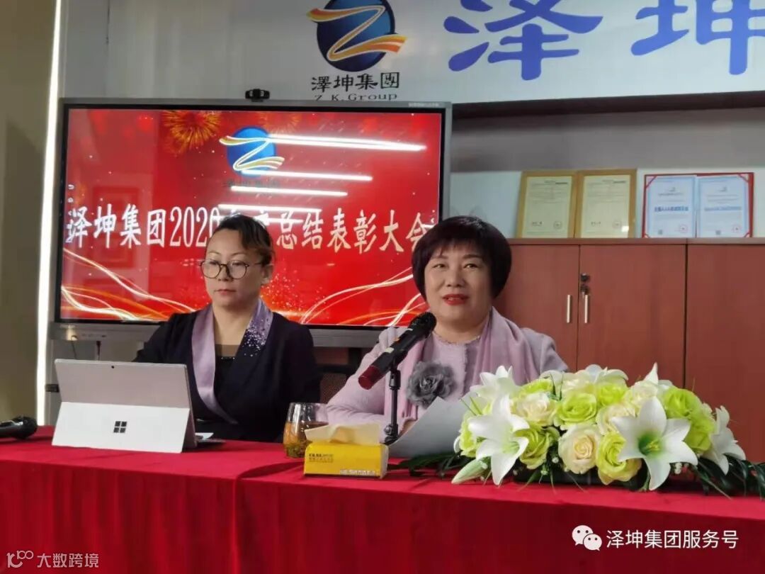 26日总结表彰会上,泽坤集团行政总裁元永泽先生发表欢迎致辞,并由泽坤集团副总裁尚洁女士做了2020年度总结报告;全面地回顾了2020年泽坤集团的发展历程,展望2021年。接着泽坤集团董事局主席刘艳女士宣布了新的人事任命、并对年度商务、文化工作表现突出的人员以及中心部门颁发了表彰奖状并发表讲话。