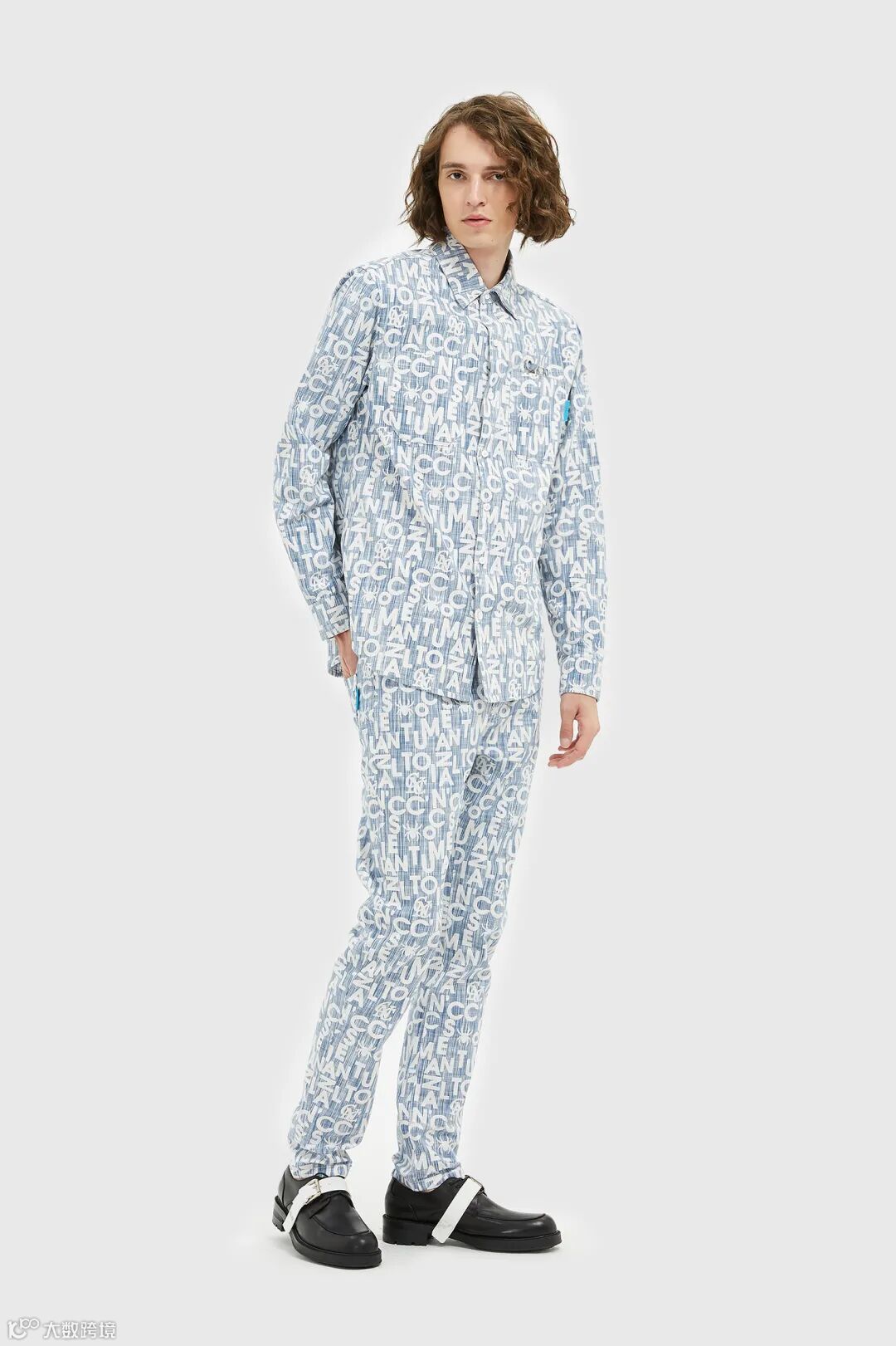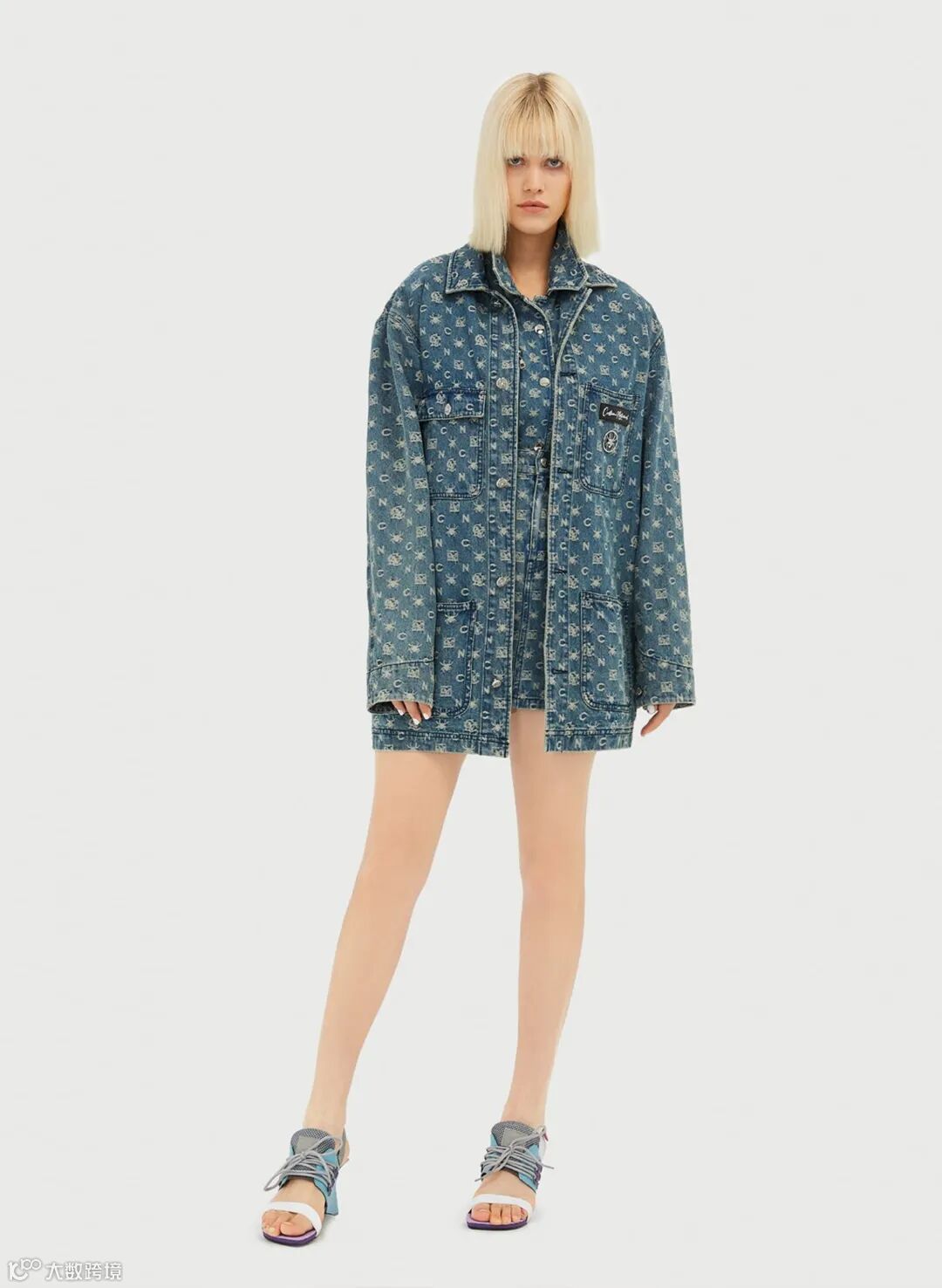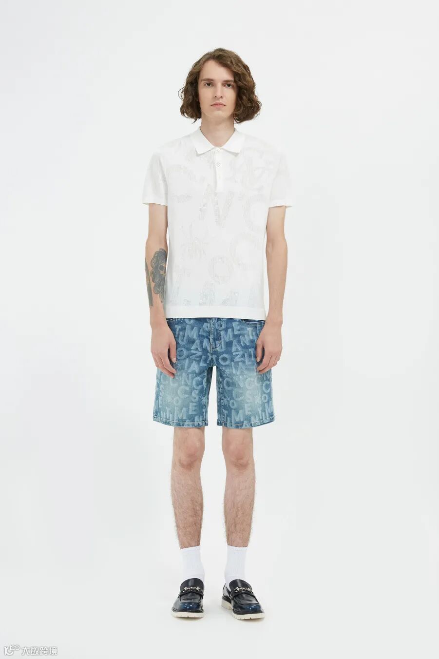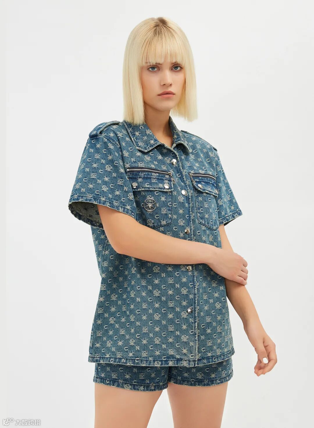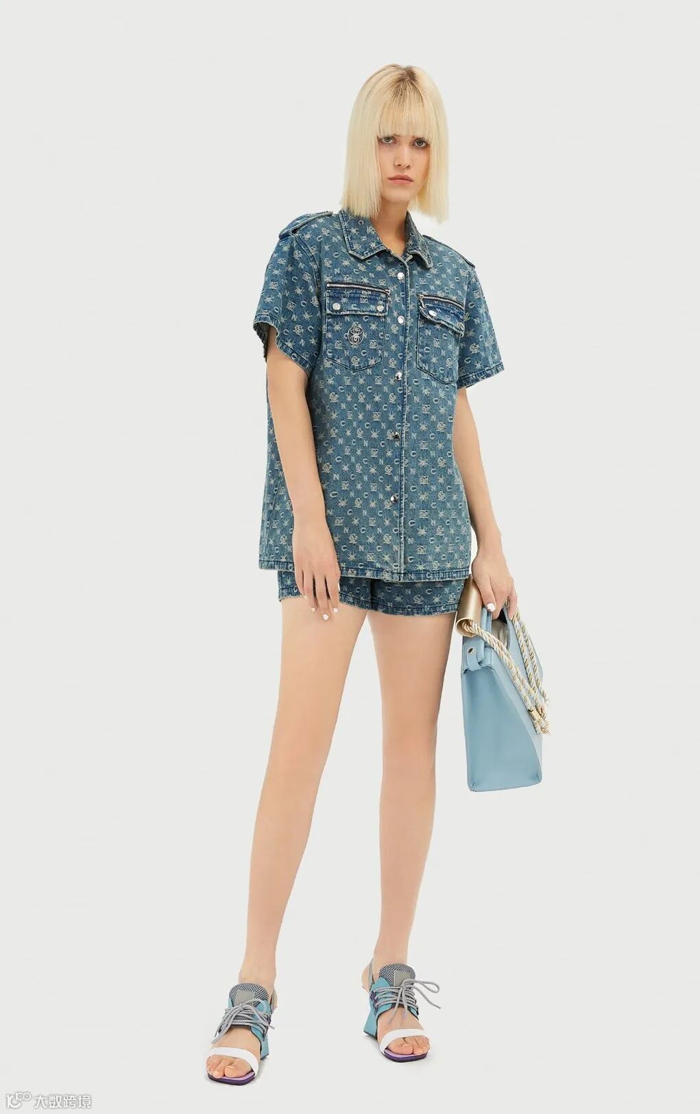 牛仔短裤满字母logo错落排列,