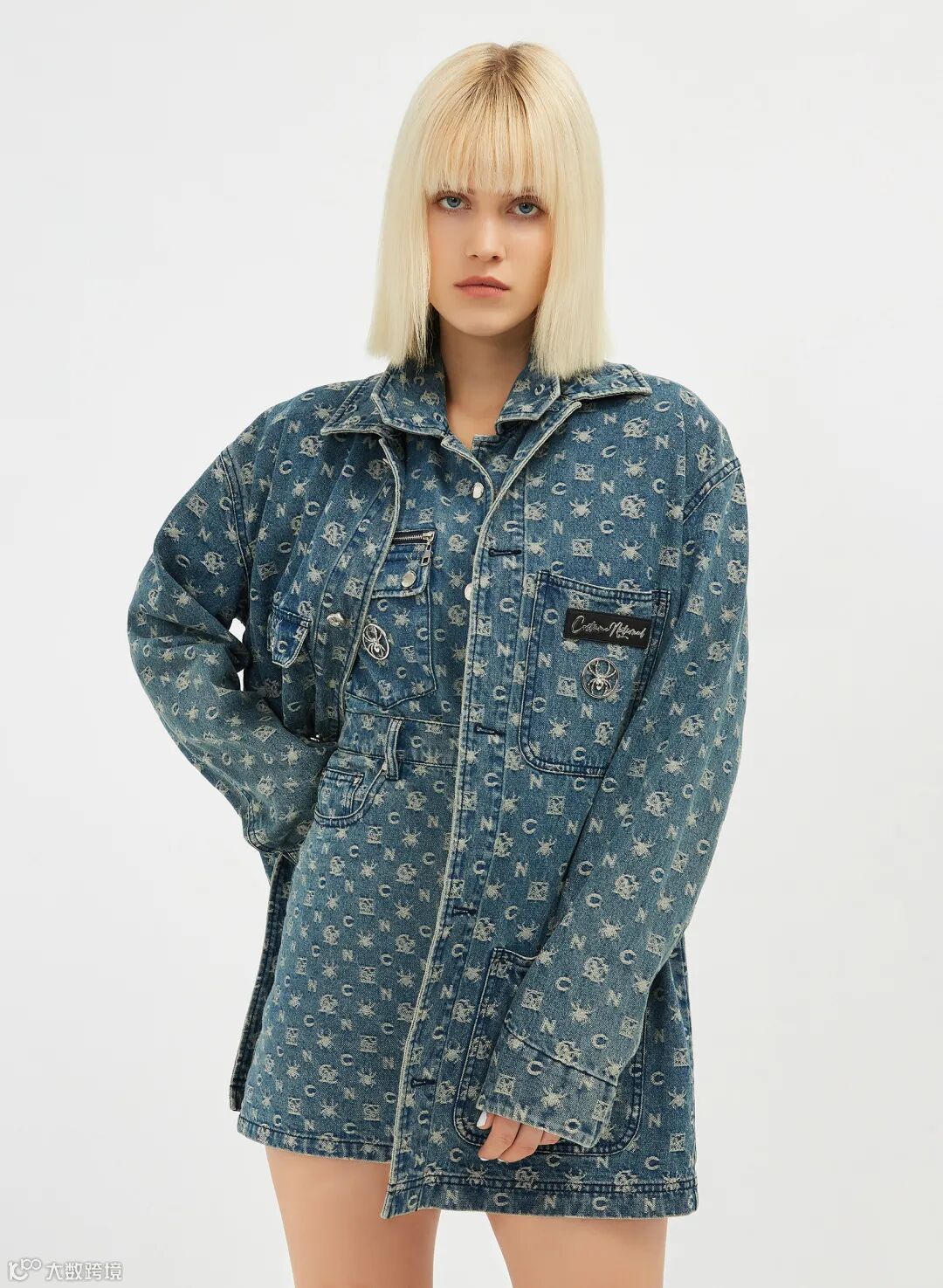 在经典丹宁面料上织出蜘蛛标志。