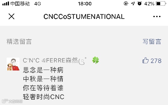上期微信推文《C'N'C 丨为中秋添上时尚格调》获奖名单: