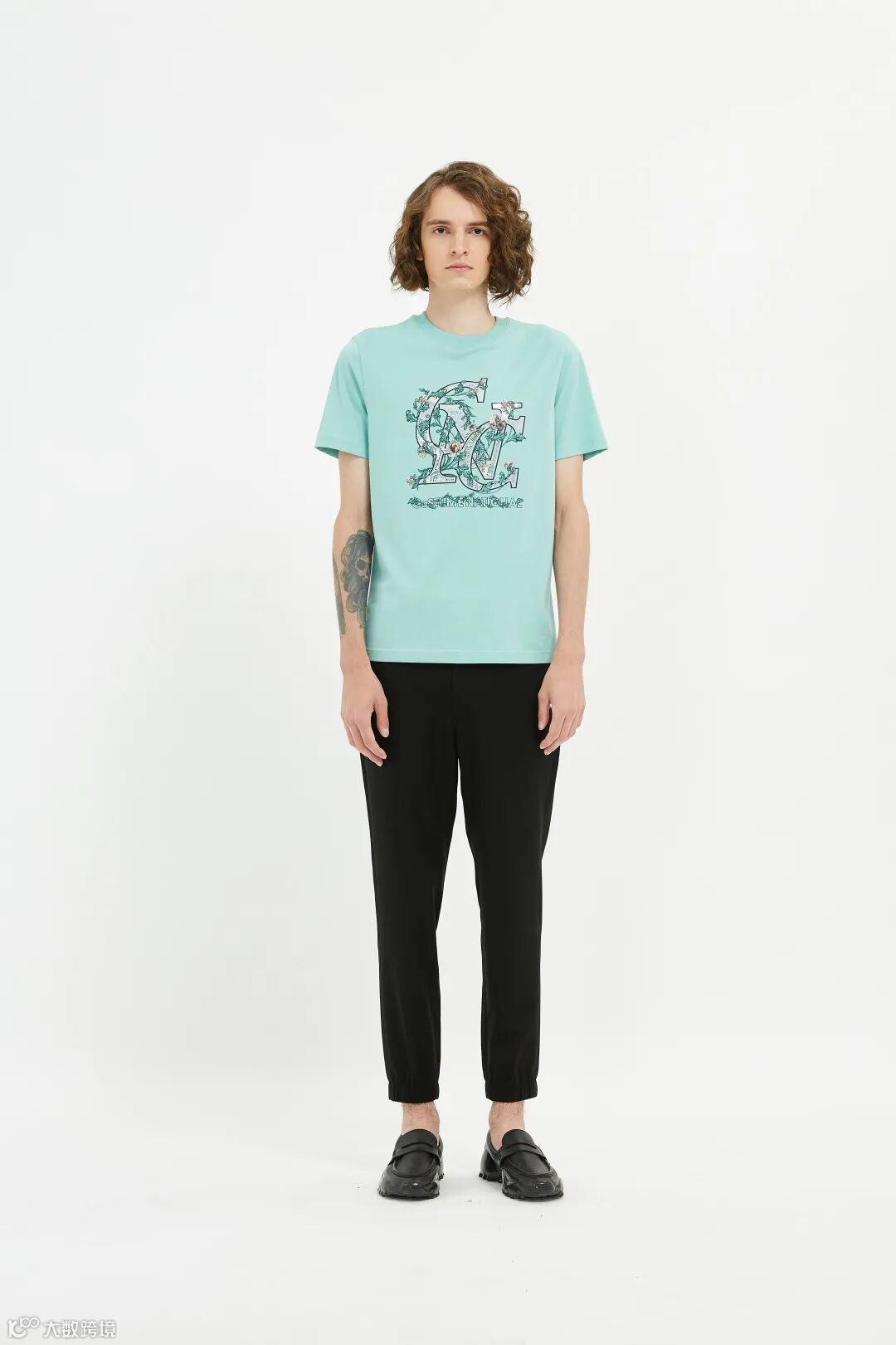 复古花卉藤蔓与logo相缠绕,