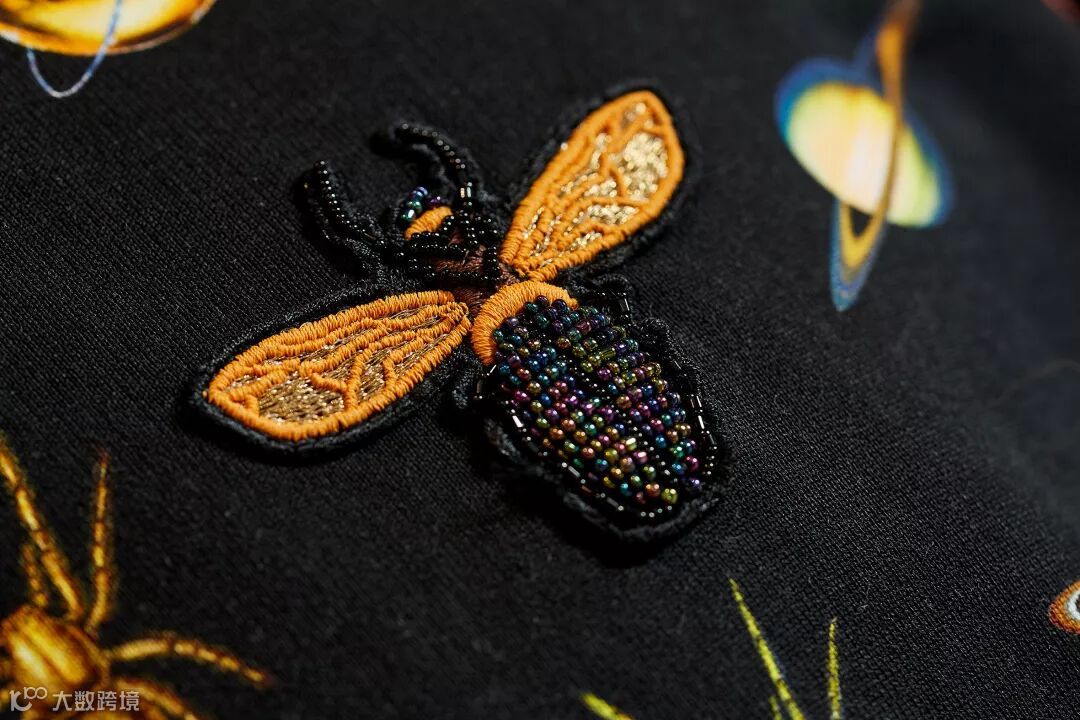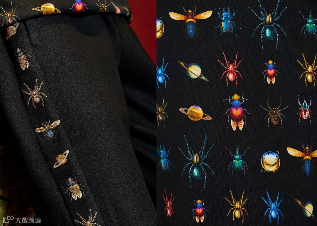 设计:具象的昆虫混入时尚,醒目的蜘蛛或花龟子图案充满灵气,蜜蜂更是王室权力的象征,时髦的奢华又有趣。