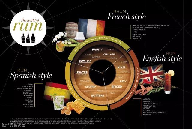 朗姆酒其实很难分类。因为所有由甘蔗汁和糖蜜蒸馏而来的酒都可以被称作或归为朗姆酒。下面我们来为大家介绍几种最常见的分类。