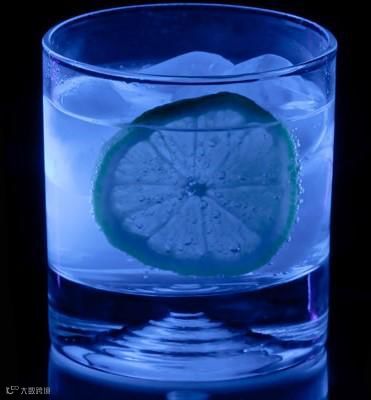 金汤力在紫外线灯的照射下会发出荧光,因为其中的汤力水含有奎宁,一种对于紫外线具有反应性的物质。