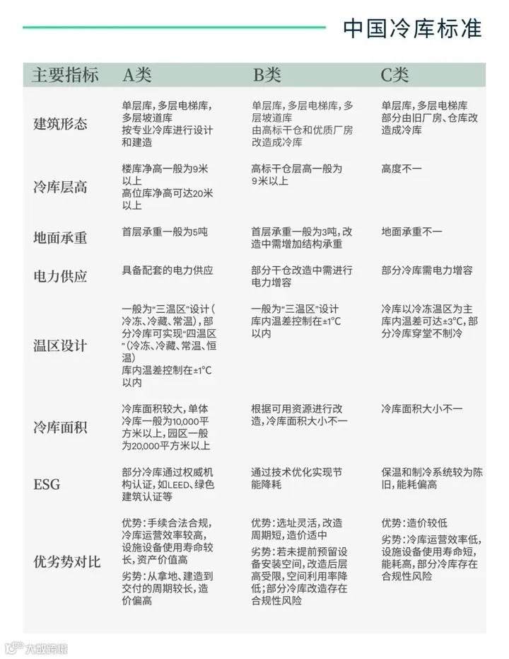 CBRE(世邦魏理仕):作为国际知名的商业地产服务和投资公司,提出了国内冷库的分类分级标准,将冷库分为A、B、C三类,其中A类冷库要求高,很可能包含了全温区配置、先进自动化设备和严格温控管理系统,这类高标准冷库可以看作全温区冷库的代表。