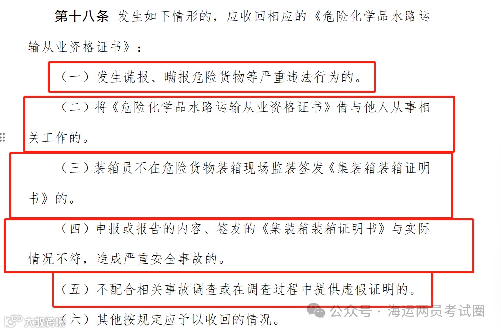 (请看船载危险货物申报员和集装箱装箱现场检查员管理办法》第十六条)