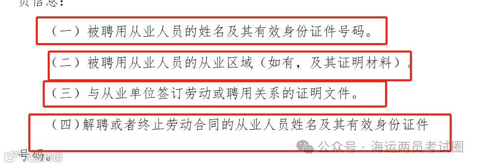 1、聘用申报员、检查员的从业单位报送海事管理系统信息中新增“与从业单位签订劳动或聘用关系的证明文件”。(请看船载危险货物申报员和集装箱装箱现场检查员管理办法》第二十条)
