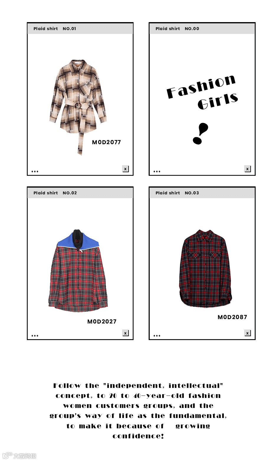 3中不同款式的衬衫穿搭,风格各不相同,颜色的改变,款式的精心的设计,截然不同的穿搭效果。率性而随意的style。打破冬装的单调性,呢子外套、羽绒服搭配格子衬衫,增加穿搭的层次感,时尚感倍增。