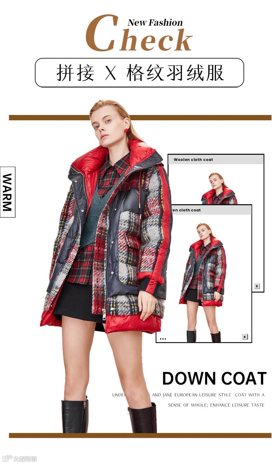 格纹拼接黑色、红色色块,大胆的设计手法,每一块颜色面料的结合运用,都恰到好处,格纹的复古与色块的时尚现代的结合,一款超级有设计感的羽绒服值得种草。穿上它,你就是时尚的弄潮儿。