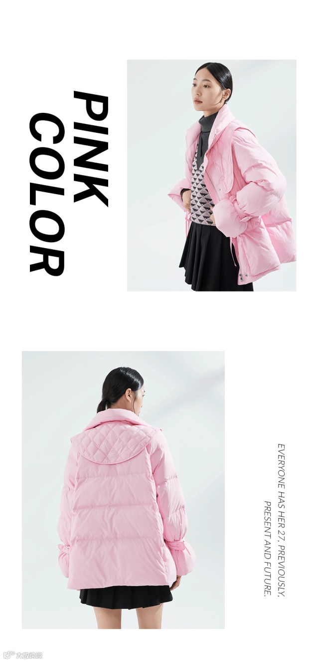 首选这件樱花粉羽绒服,给你浪漫的温暖。