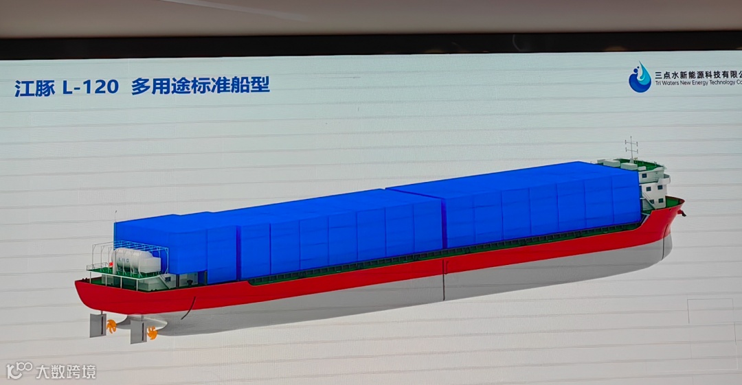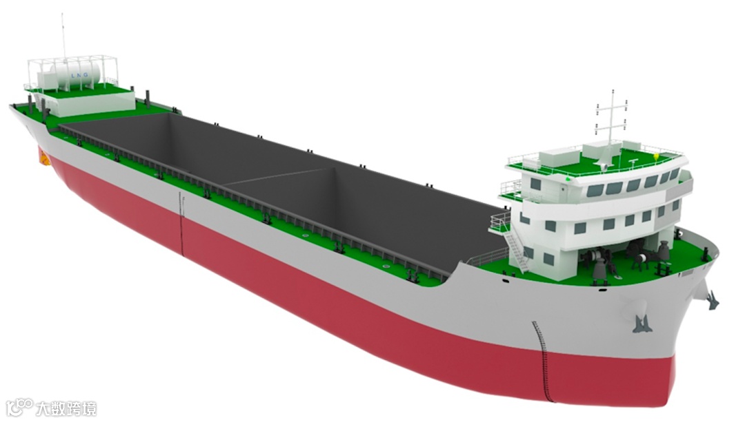 与同类型船舶相比,该船型的显著优势,一是装载效率同比大幅提升,散装装载量提升8%,集装箱装载量提升20%,总吨位提高8%-12%;二是动力性能出色,最大航速超10节,经济航速7节,经济续航力可达2000km,综合续航约1300km;三是节能环保领先,经济航速下百公里燃料消耗量仅为0.96t,相比传统燃油可节约燃料费用5480元/百公里,碳排放减少30%。