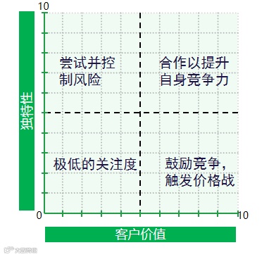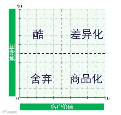 我们再通过另外一个模型(如图1-2)看看客户会分别如何对待这四个象限中的产品或服务: