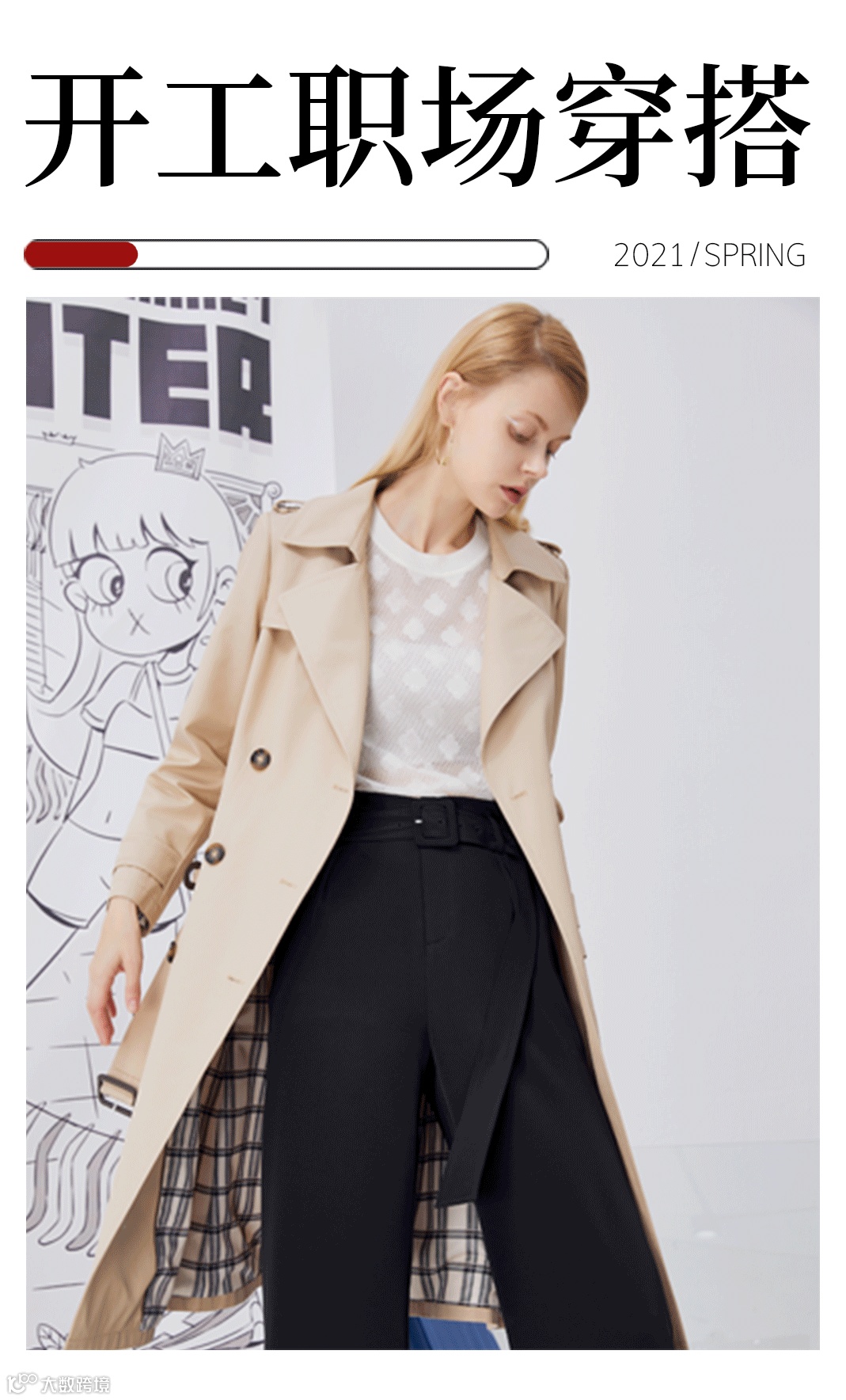 酷飒女孩的标配—风衣,风衣加身走路带风,一直都是职场穿搭必备的首选单品,色彩的选择搭配上又中和了温柔的女性色调。甜酷女孩的选择。