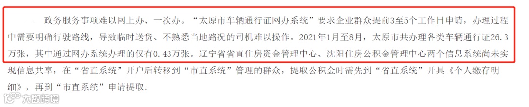 2021年1月至8月,太原市共办理各类车辆通行证26.3万张,其中通过网办系统办理的仅有0.43万张。