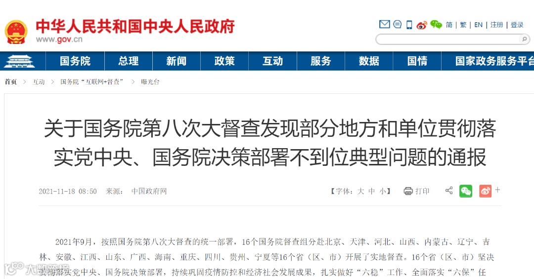 今年9月,16个国务院督查组分赴北京、天津、河北、山西、内蒙古、辽宁、吉林、安徽、江西、山东、广西、海南、重庆、四川、贵州、宁夏等16个省(区、市)开展了实地督查。